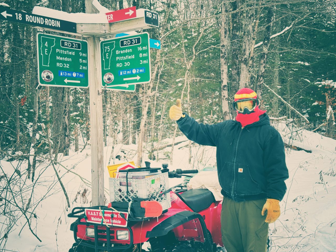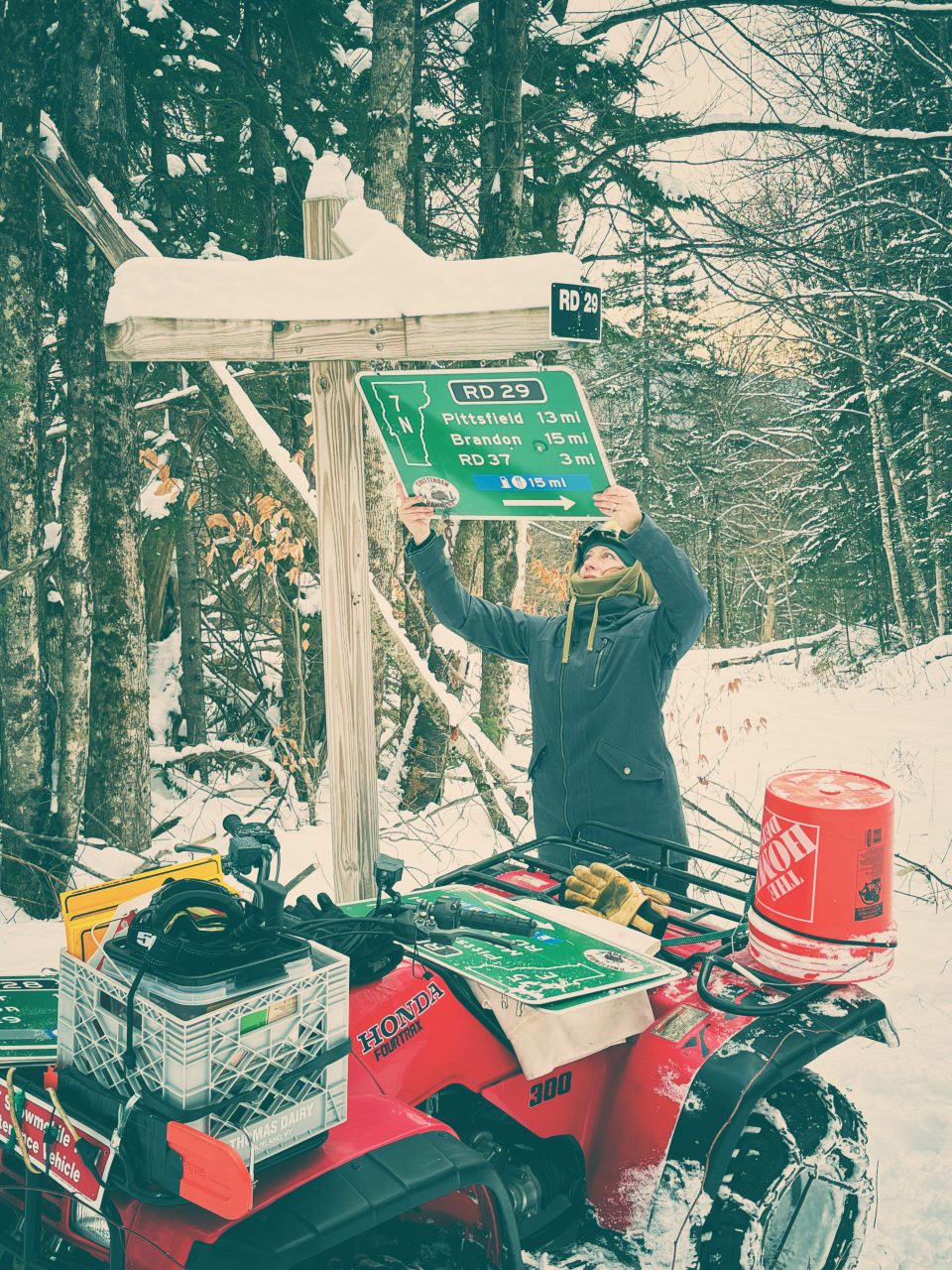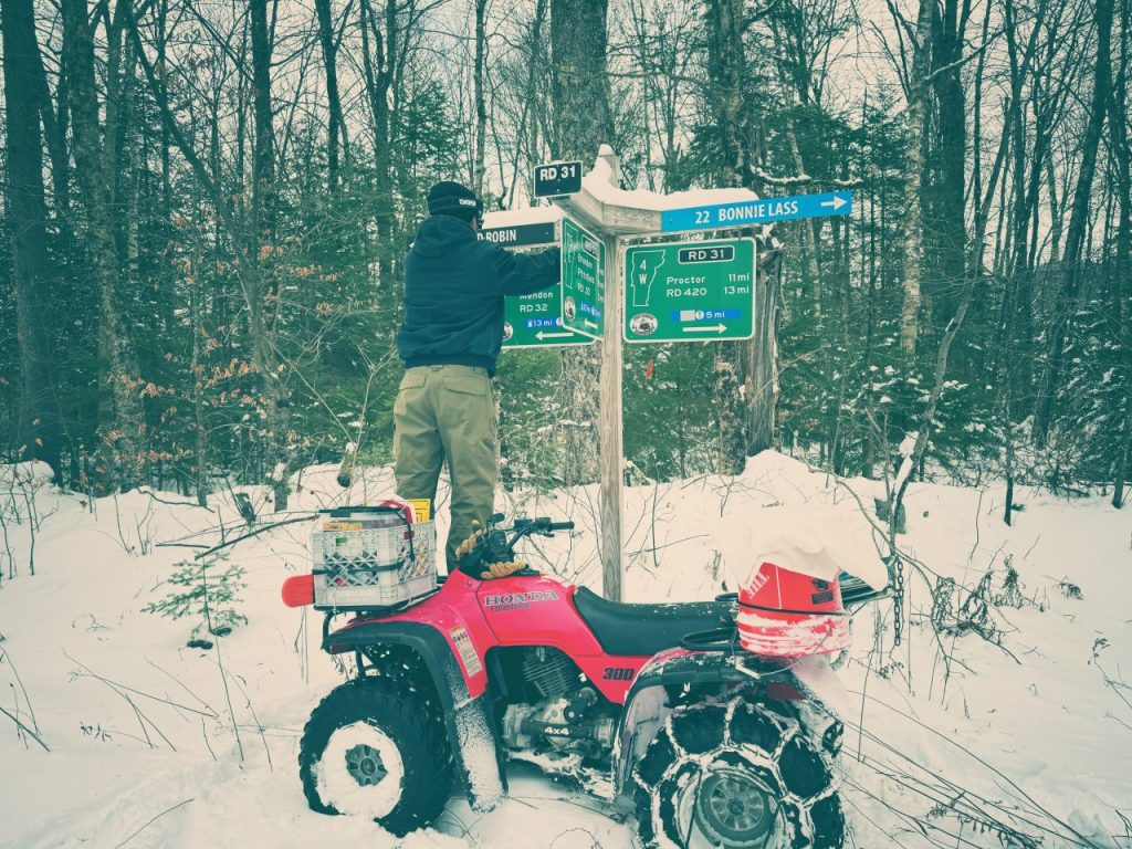 Across Chittenden, trail work has been ongoing, and Aaron and Amy have kicked off sign-hanging to get everything clearly marked for riders.